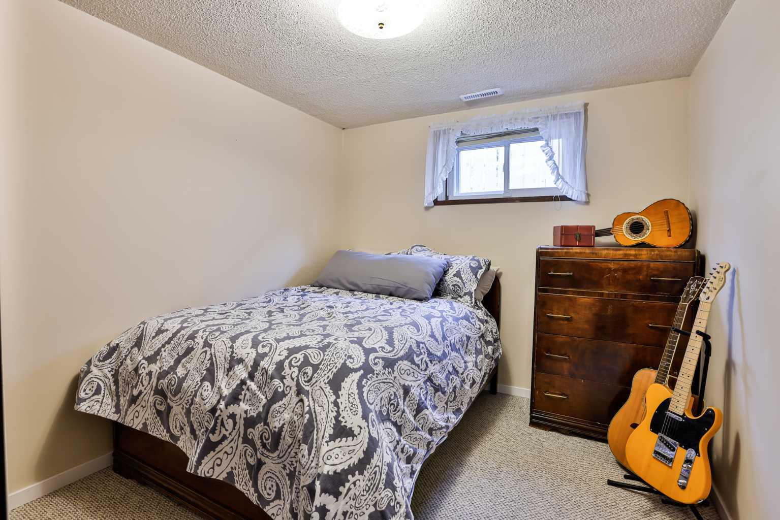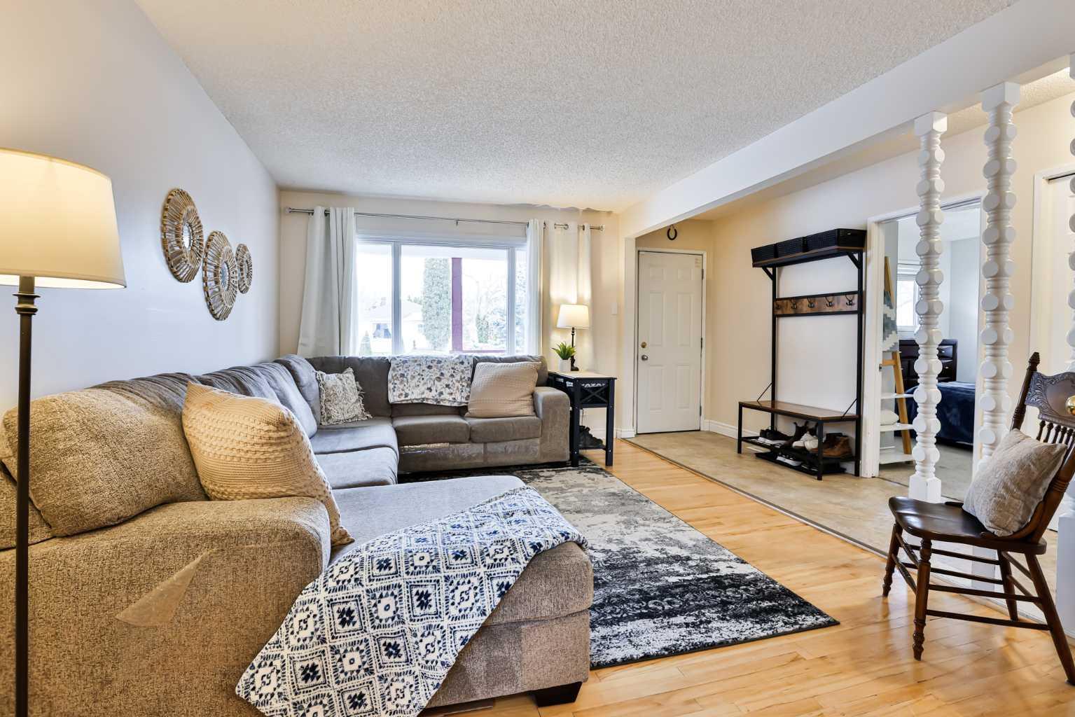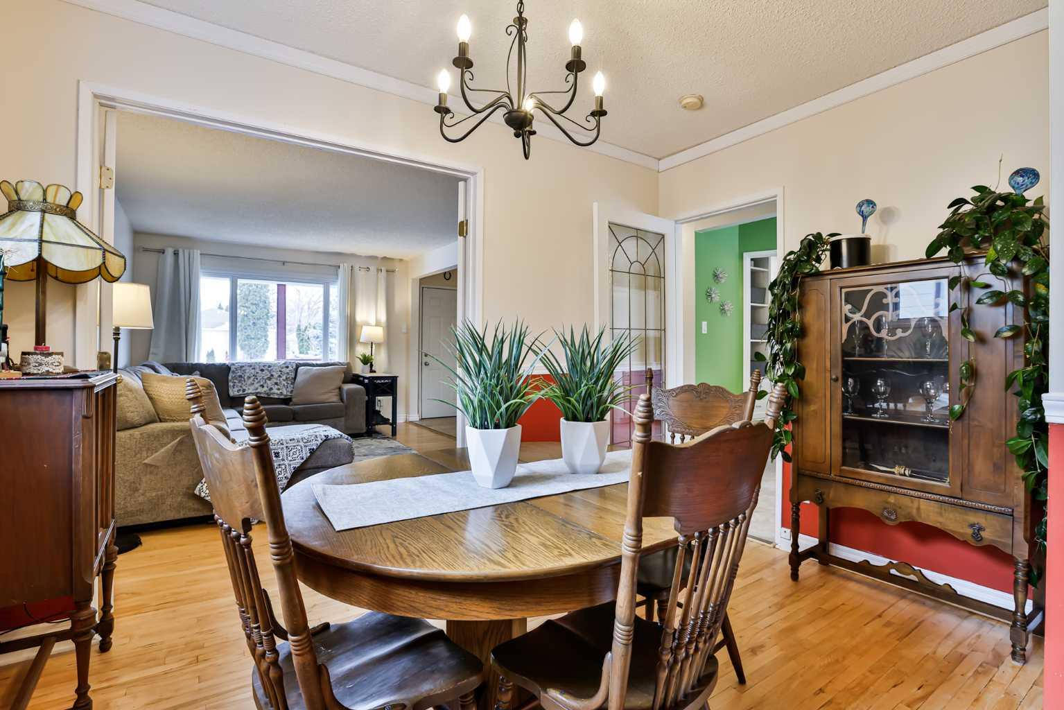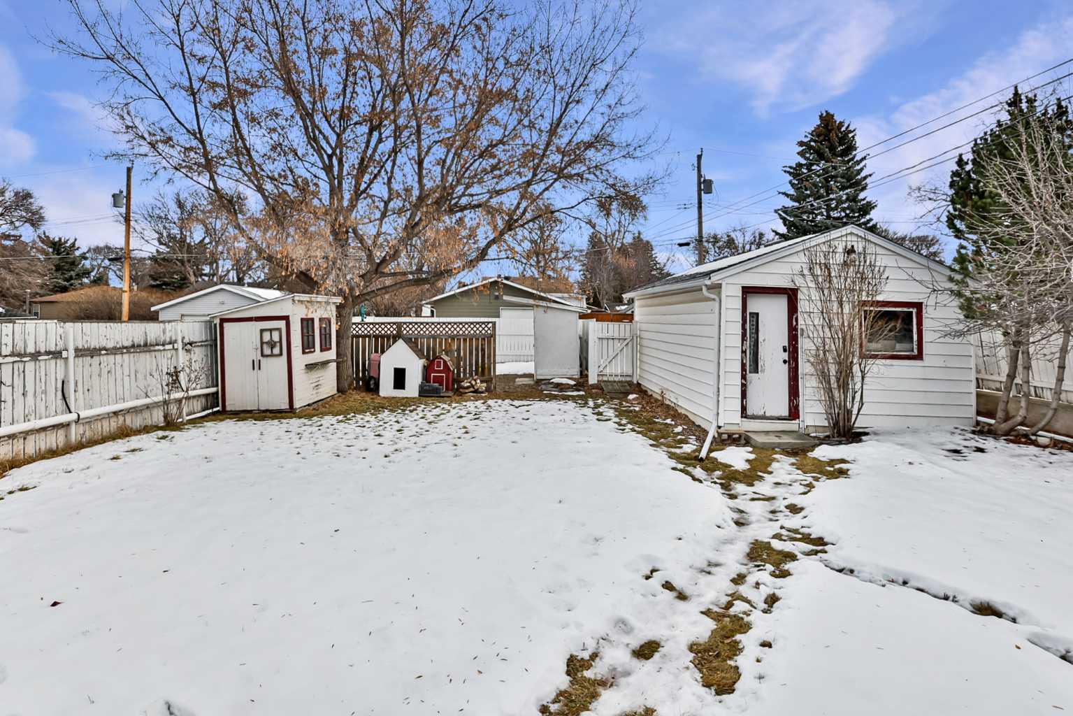 If you've been waiting and waiting patiently for your perfect first home, here she is! This bungalow is not only adorable, it is comfortable and move-in ready! Your spacious living room and dining room boast hardwood floors and French doors between. Down the hall is a super-functional u-shaped kitchen with a bay window facing onto the backyard. Along the hall is a bright, renovated 4-piece bath with extra built-in storage. And back to the front of the house is the primary bedroom. Downstairs is finished and cozy, offering a large family room that can be used a multitude of ways (including sitting by the fireplace!), a 3-piece bath, second bedroom (may not meet egress), and large utility room for laundry and storage. Outside there is tons of extra parking + a single detached garage. And while it may be cold outside now, start making summer plans! You'll want to entertain in the huge backyard with covered patio. This home has been dearly loved by its owners over the years--now it's your turn to move in and love it too!